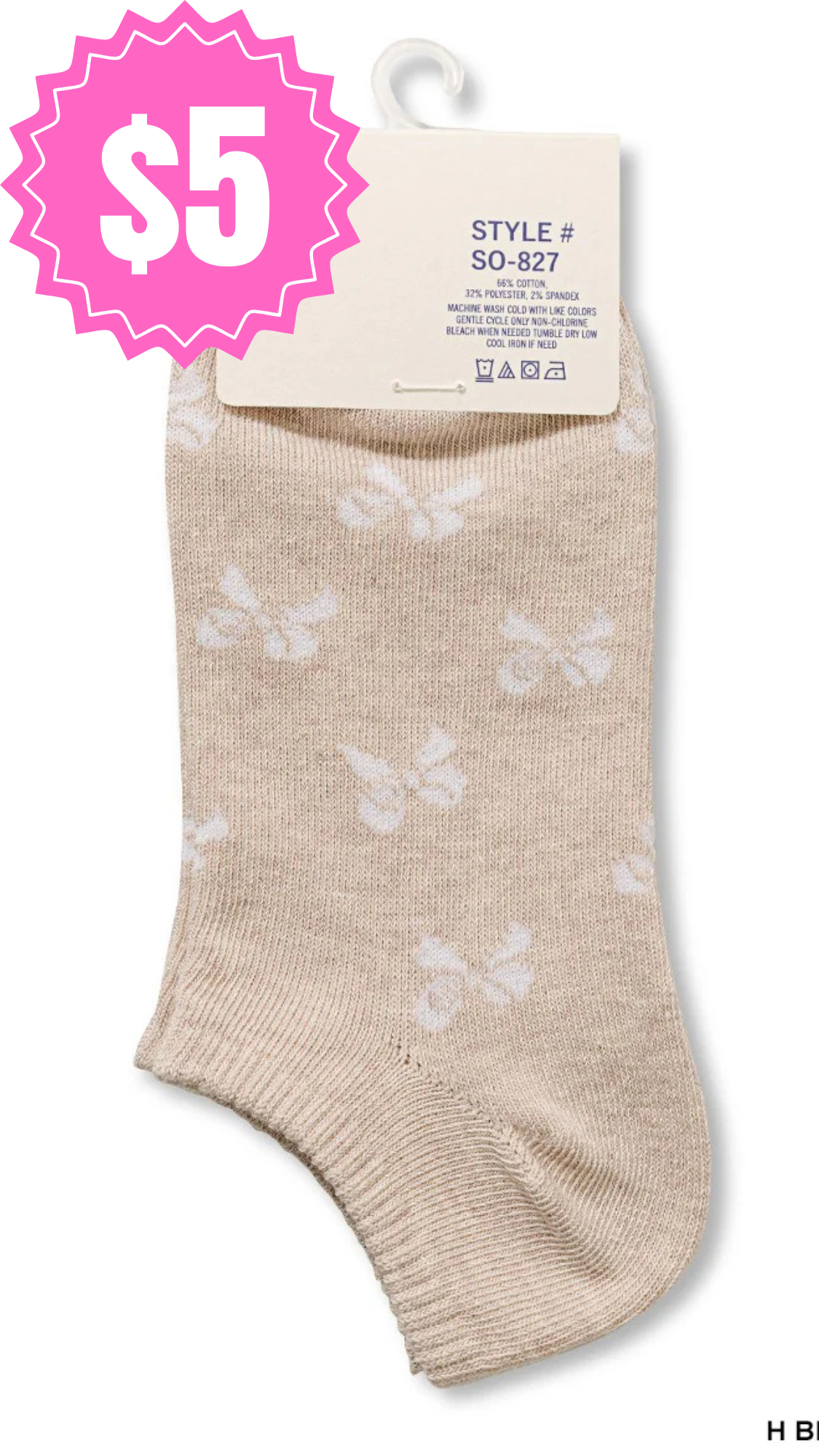 Bow Printed Ankle Socks: Beige