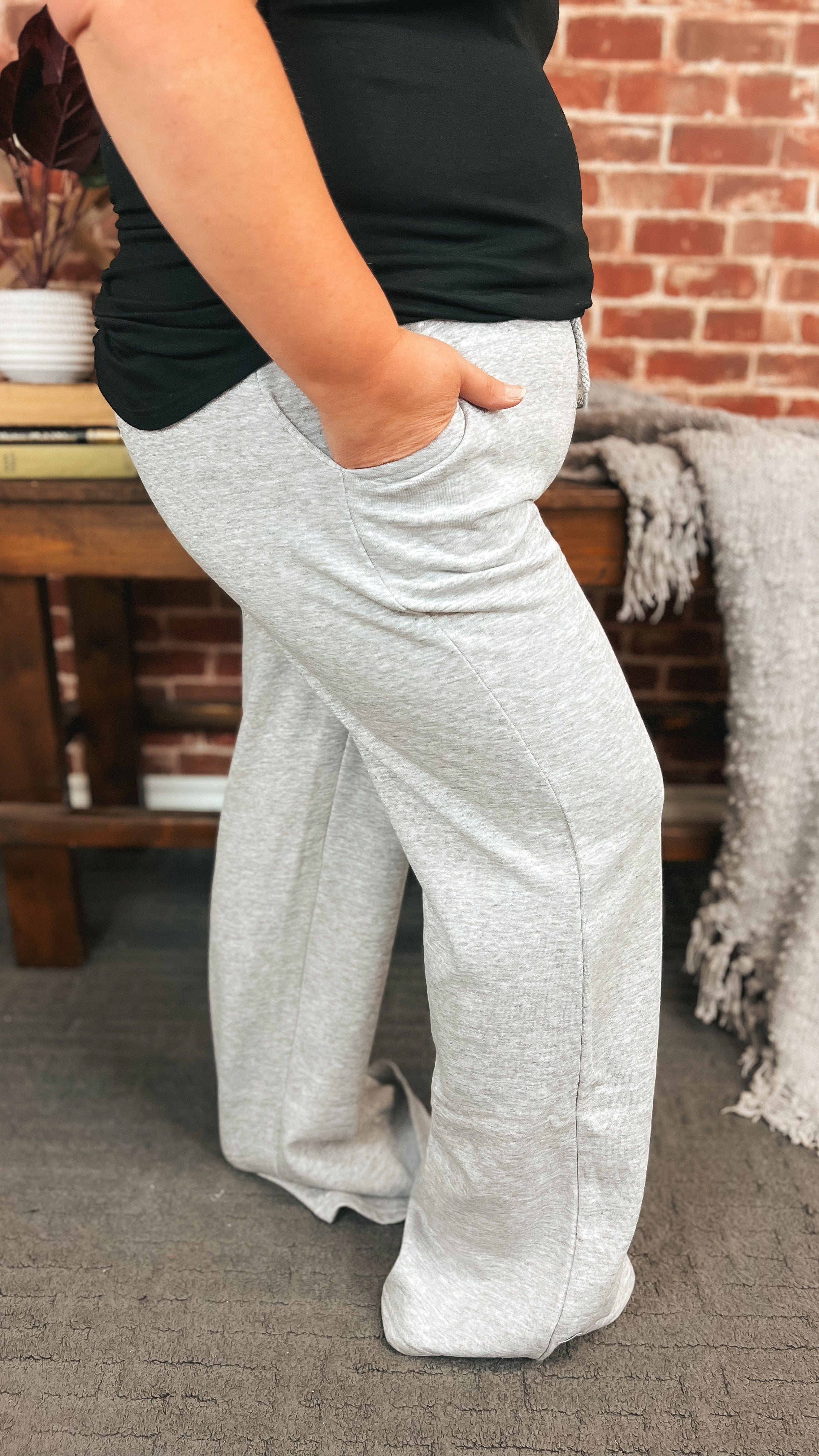Step into cozy comfort with the Jodie Wide Leg Jogging Pants in grey. These fleece-lined pants keep you warm while the wide leg cut adds a breezy, playful vibe. With a mid-rise fit and adjustable drawstring waist, they promise comfort tailored just for you. Plus, handy pockets are perfect for keeping essentials close while you lounge or run errands in style.