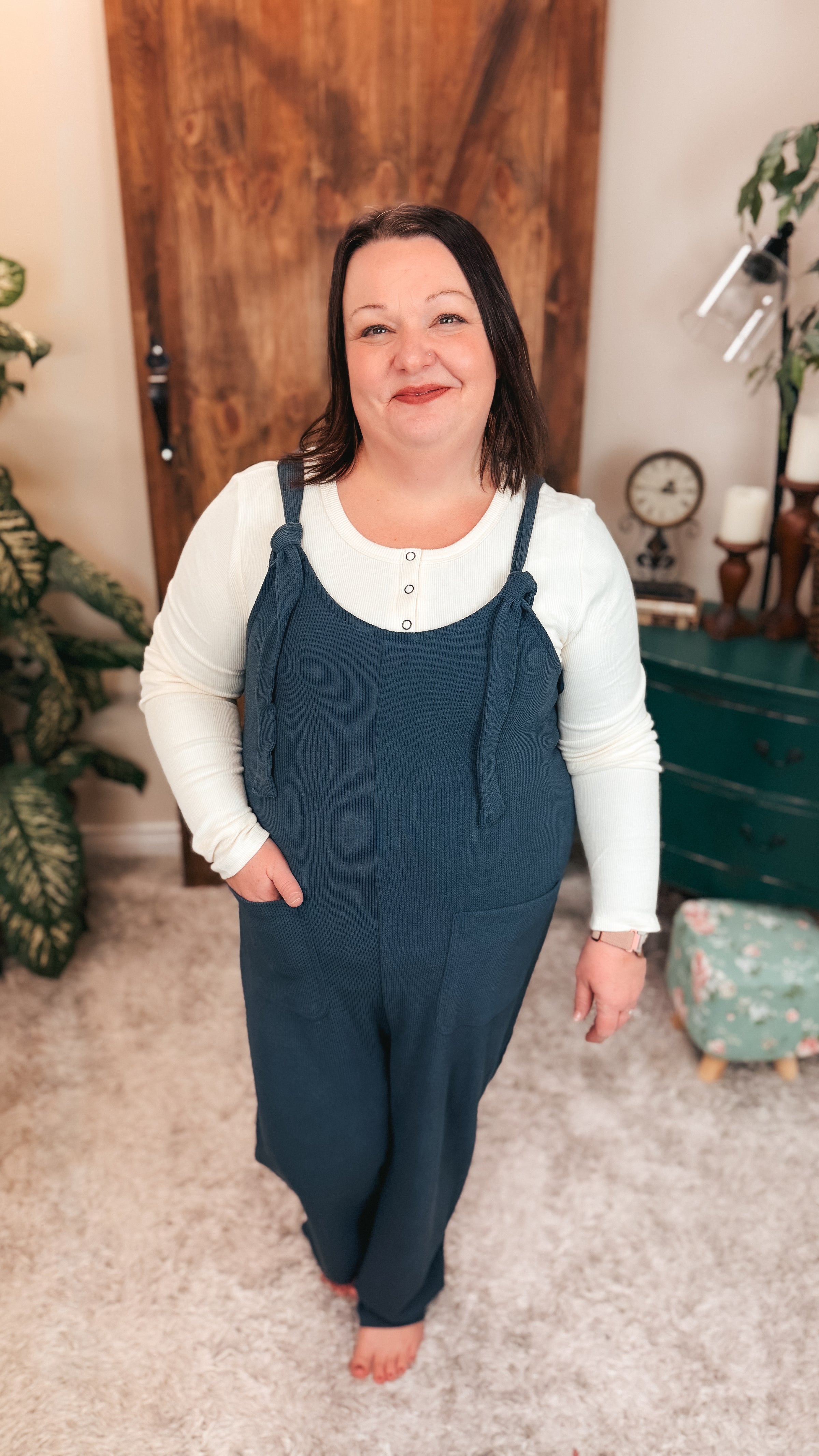 • Loose fit ribbed knit baggy jumpsuit