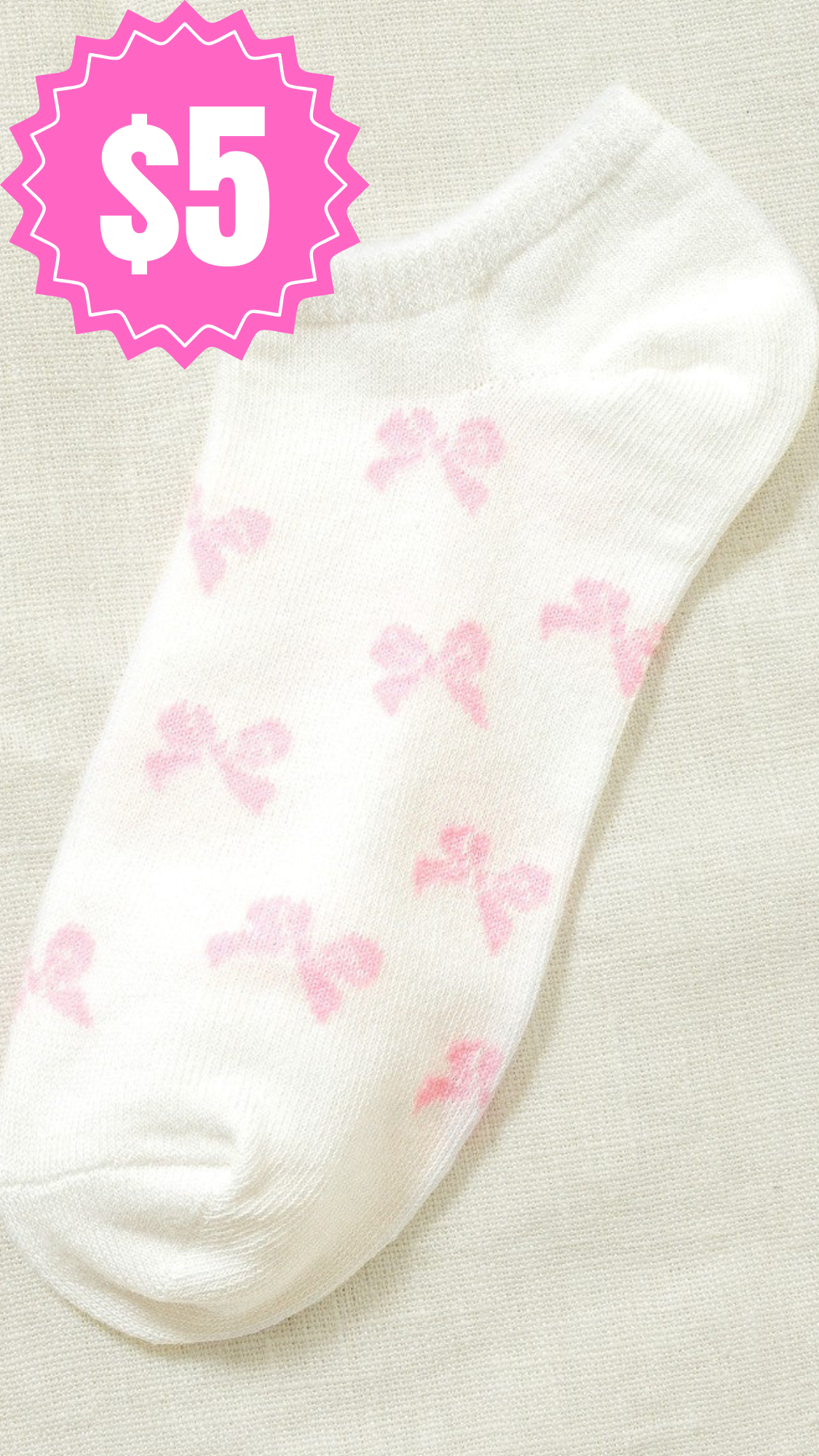 Step up your sock game with these playful ankle socks featuring an all-over bow print. Designed low cut for a discreet fit, they’re made from breathable fabric to keep your feet comfy all day. Perfect for adding a touch of cute charm to any outfit!