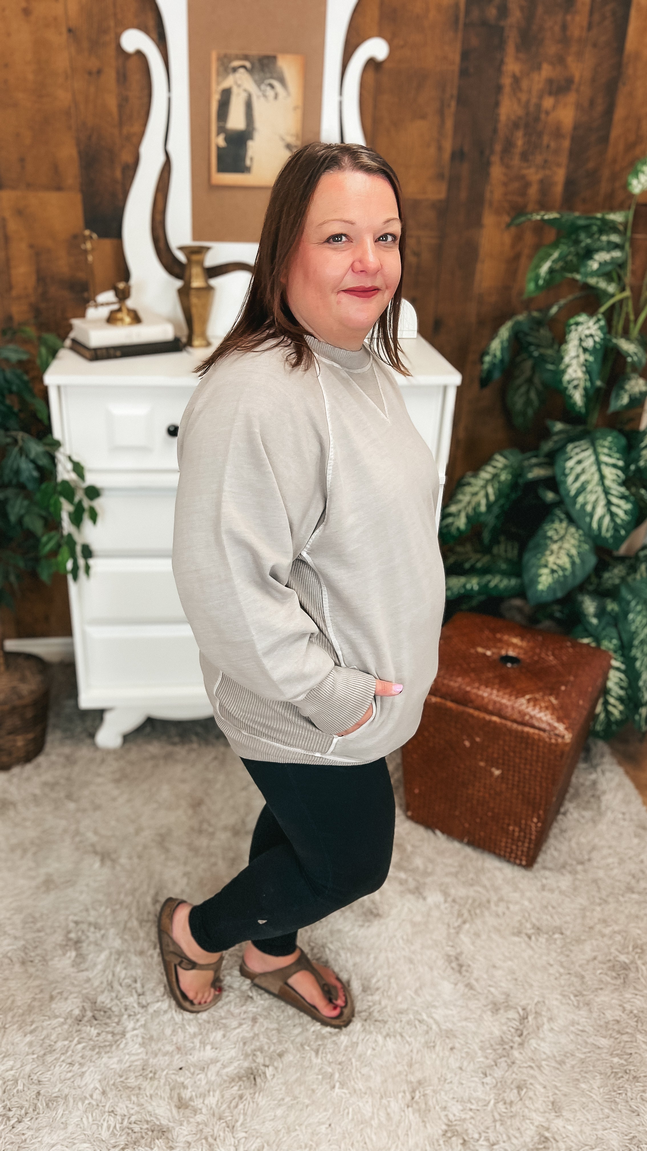 Stay stylish and cozy with the Lori Pocket Sweater in ash mocha. This pullover sweater features lightweight fabric and unique ribbed side inlays. Did we mention it also has pockets? Perfect for storing your essentials while you conquer the day in comfort.